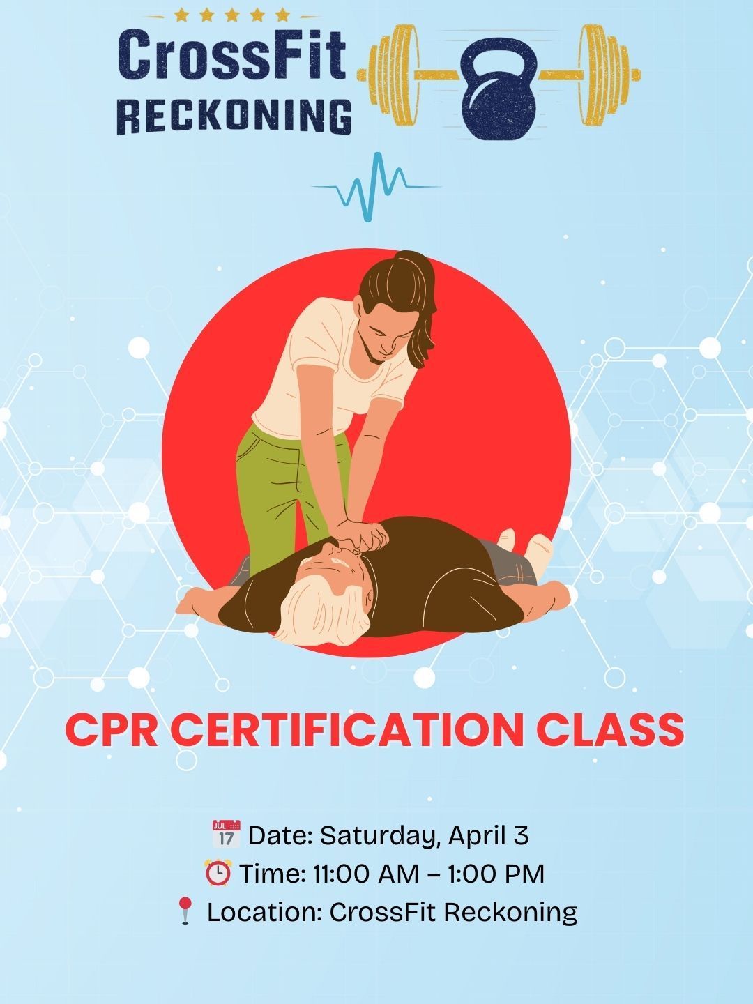 🚑 CPR Certification at CrossFit Reckoning 4 Be Ready When It Matters Most. CrossFit Reckoning is hosting a CPR Certification Class led by the Keystone Valley Fire Department. Whether you're a coach, parent, athlete, or community member, this class will give you the skills and confidence to respond in an emergency. 📅 Date: Saturday, April 3 ⏰ Time: 11:00 AM – 1:00 PM 📍 Location: CrossFit Reckoning 💲 Cost: $20 per certification card Participants will receive certification in: • Healthcare Provider CPR • Adult & Pediatric CPR • AED Use This certification is valid for two years. The class is being taught by Fire Chief Joseph Marks of the Keystone Valley Fire Department. He is generously volunteering his time, and donations to the department are welcome but not required. This is a great opportunity for our community to learn life-saving skills together. Spots will be limited, so reserve your spot soon.